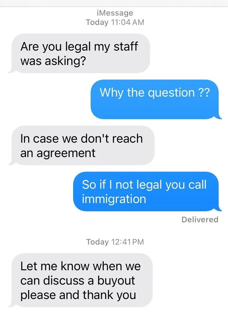 Similar texts were sent to other tenants in the same building, many of whom are monolingual Spanish-speakers. The implication was clear.