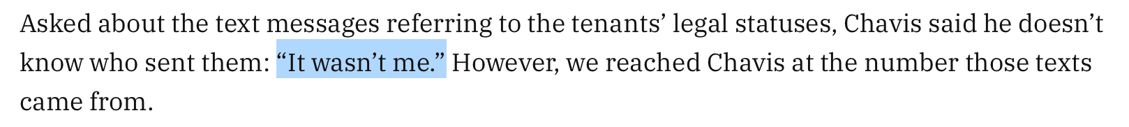 When Oaklandside reached Chavis by phone, he denied everything, saying, “none of it is true.” It’s worth clipping directly from the article just to see the pure gall of this guy: